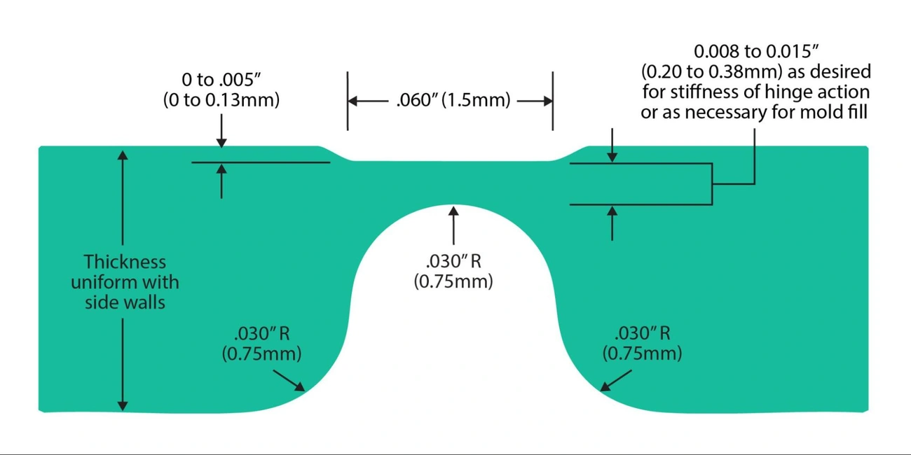 Złoty wymiar przewężenia: W najcieńszym miejscu zawias powinien mieć dokładnie 0,3 mm. To optymalna grubość, która zapewnia elastyczność, a jednocześnie zachowuje integralność materiału.