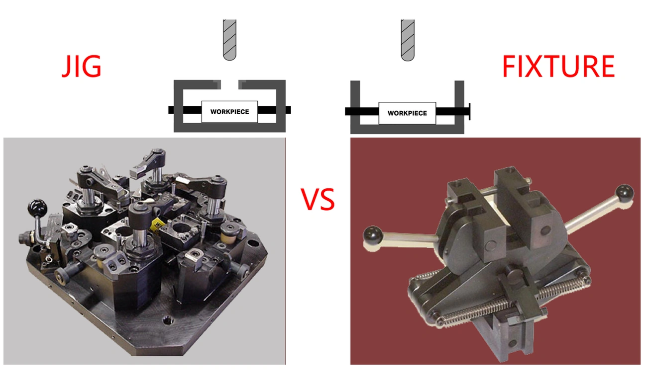 Fixture, czyli przyrząd mocujący, natomiast skupia się wyłącznie na pewnym i stabilnym utrzymaniu obrabianego przedmiotu w określonej pozycji. W przeciwieństwie do jigów, nie zawiera elementów prowadzących narzędzia. Zadaniem fixture'a jest unieruchomienie elementu tak, aby mógł być poddany obróbce, inspekcji lub montażowi.